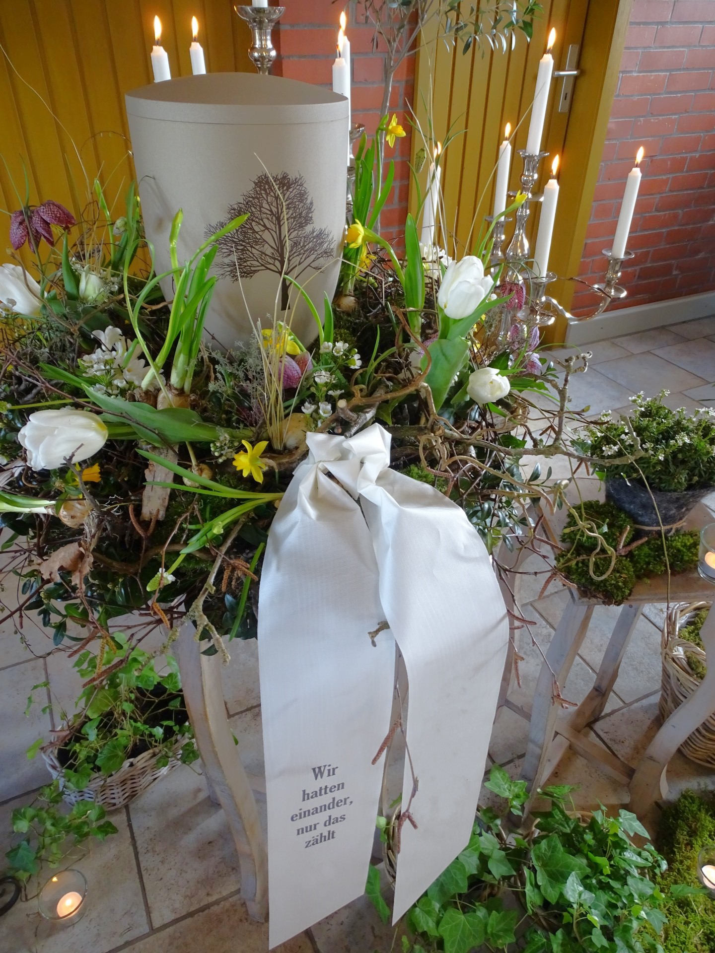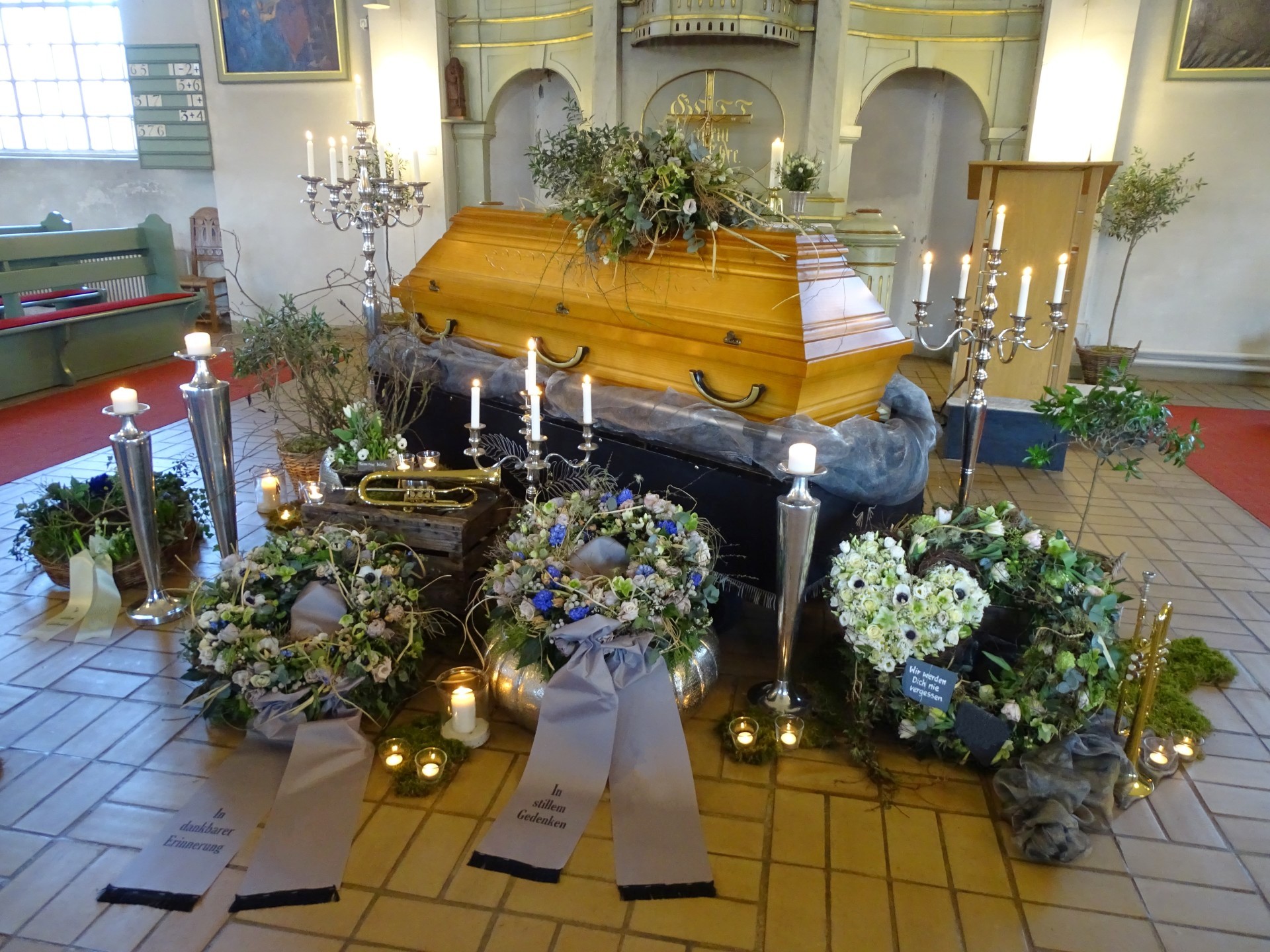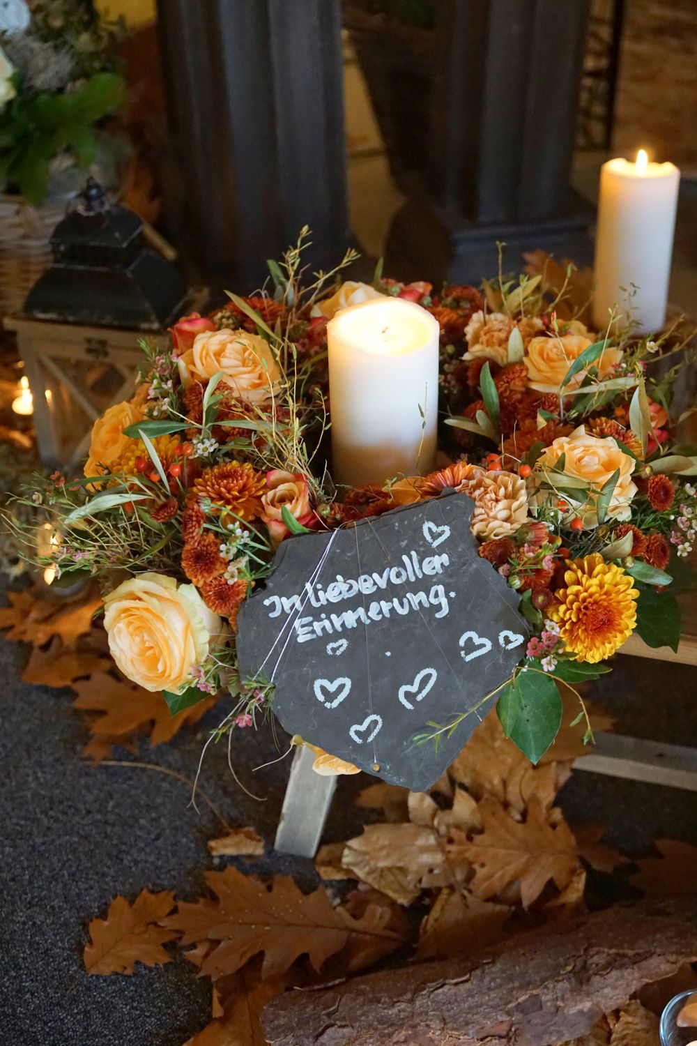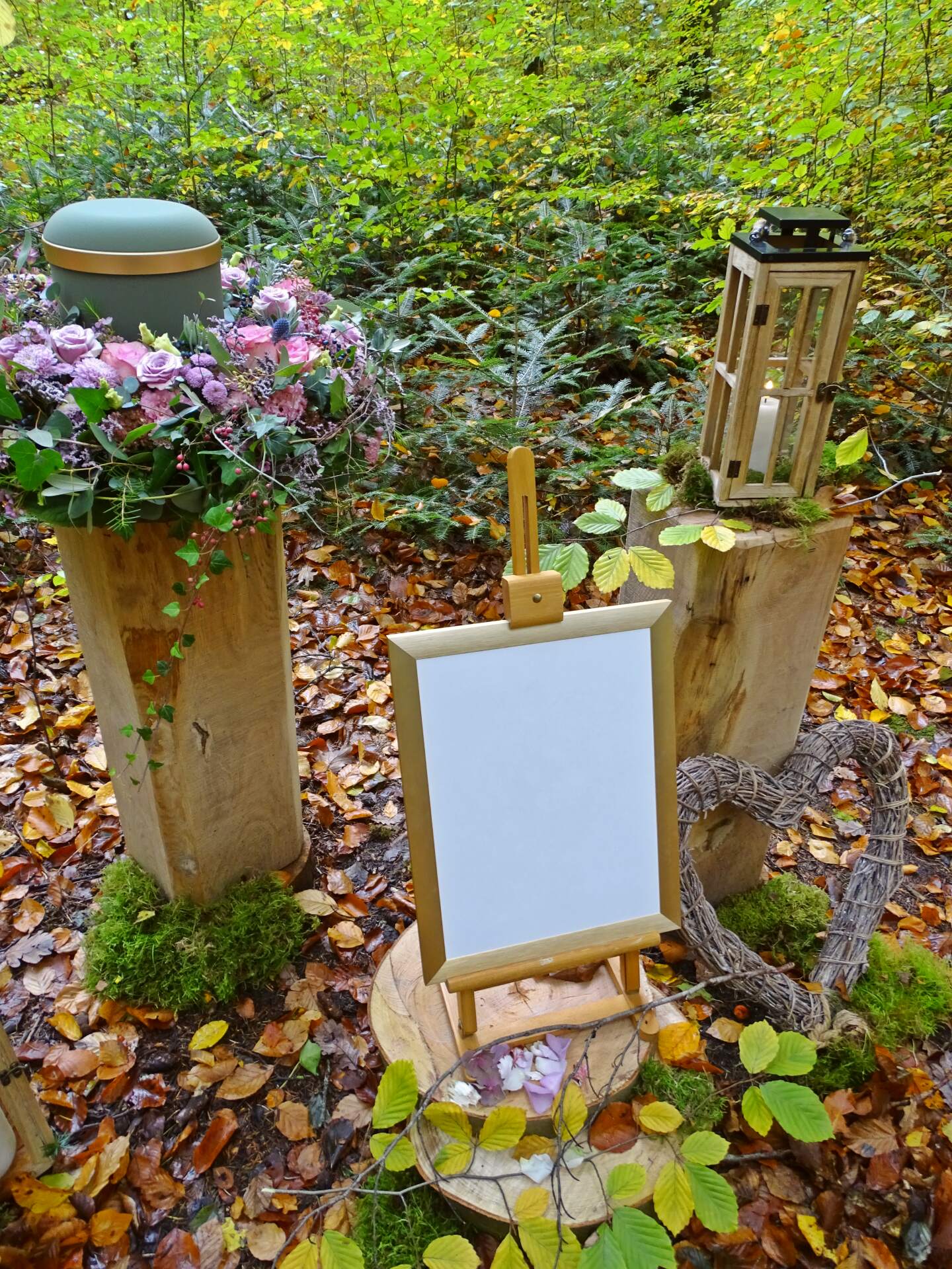 Wir sind mit viel Engagement und Kreativität für Sie da. Immer wieder hören wir, dass unsere Arrangements eine schöne Atmosphäre und wertvolle Erinnerungen schaffen. Das gelingt uns beispielsweise mit Accessoires aus dem Berufsleben oder Dekorationen, die Bezug auf das geliebte Hobby nehmen. Wenn Sie es wünschen, unterstützen wir Sie: mit besonderen Dekorationen, stimmungsvoller Musik oder individuellen Abschiedsritualen.