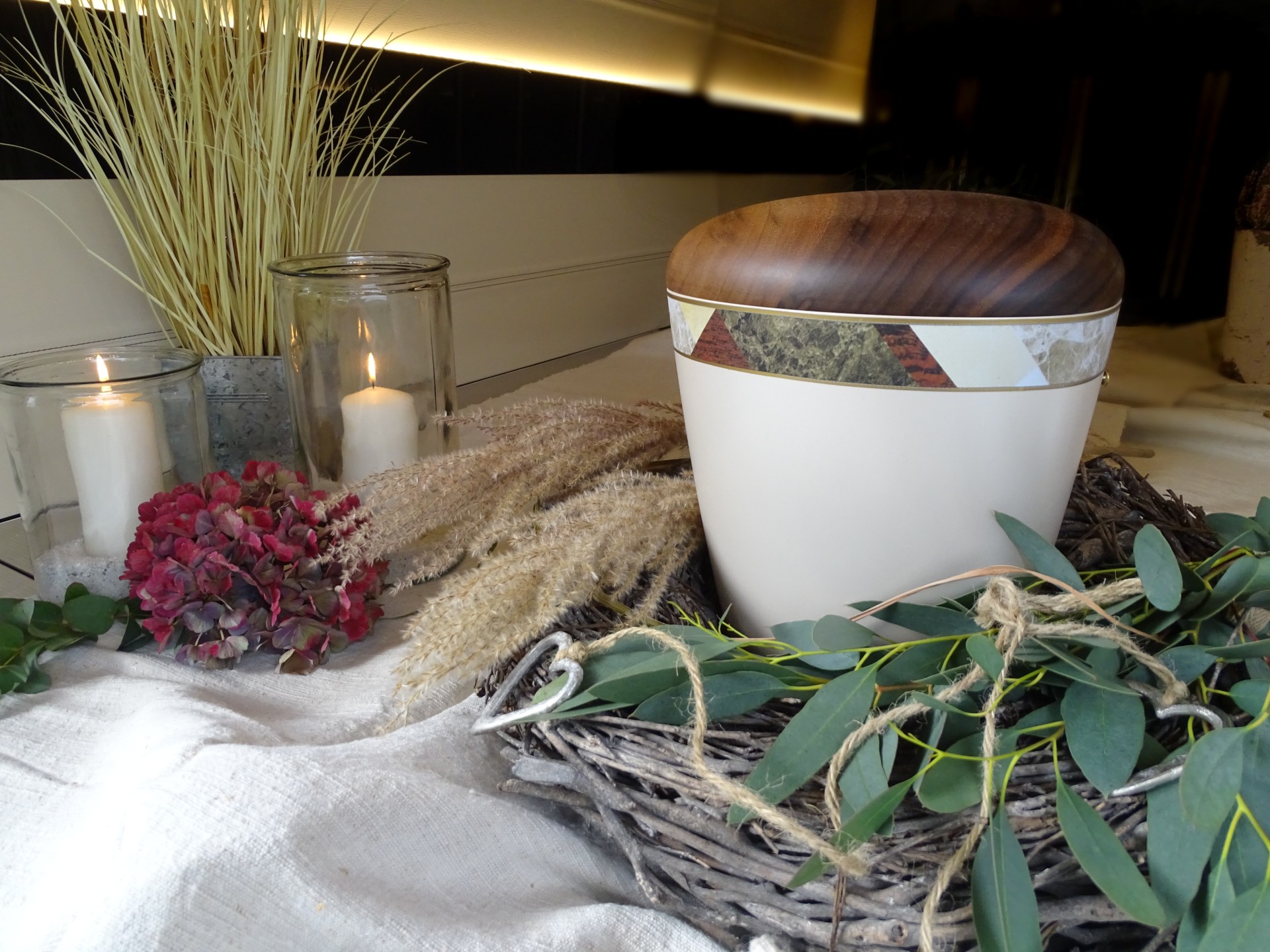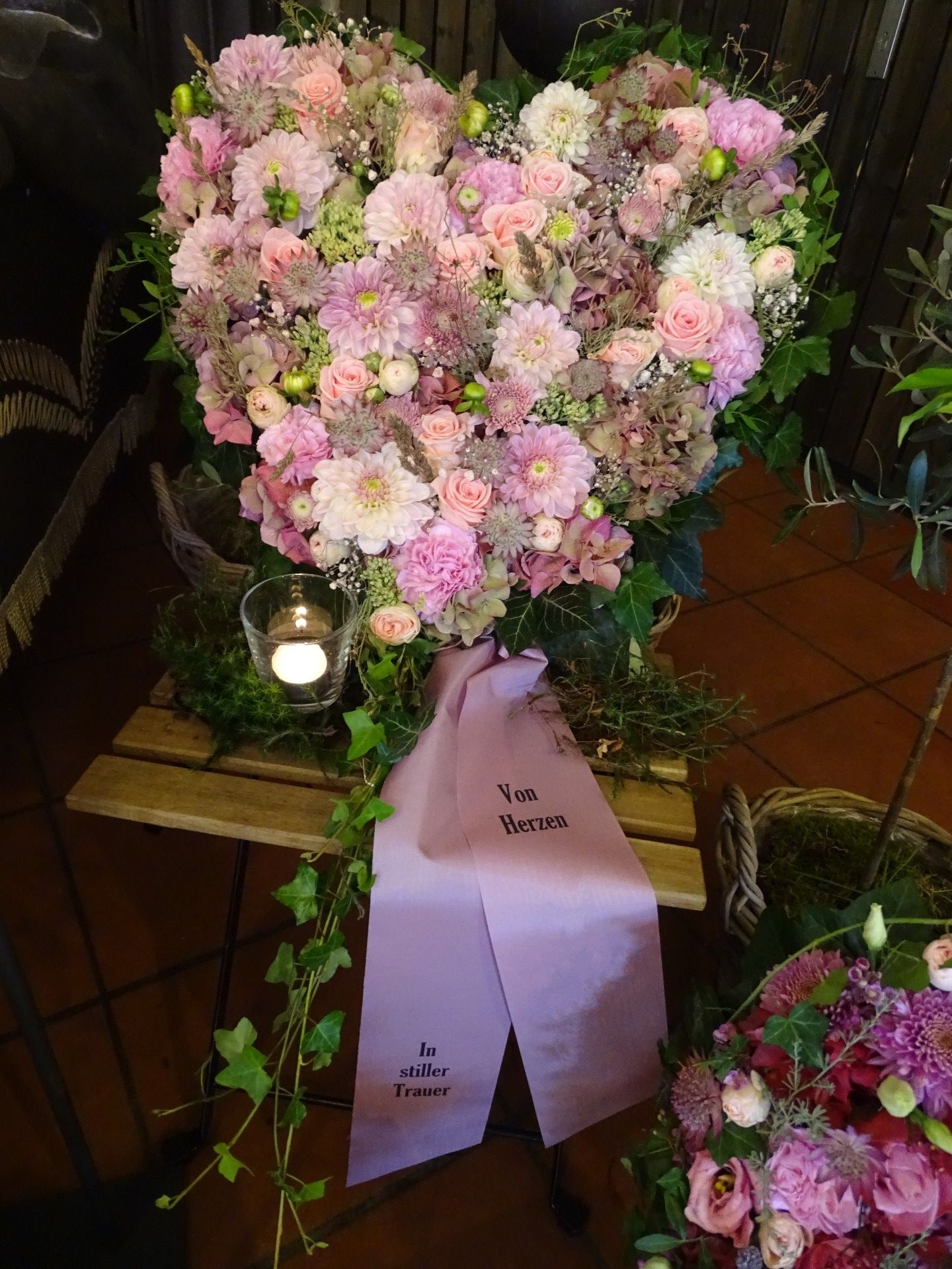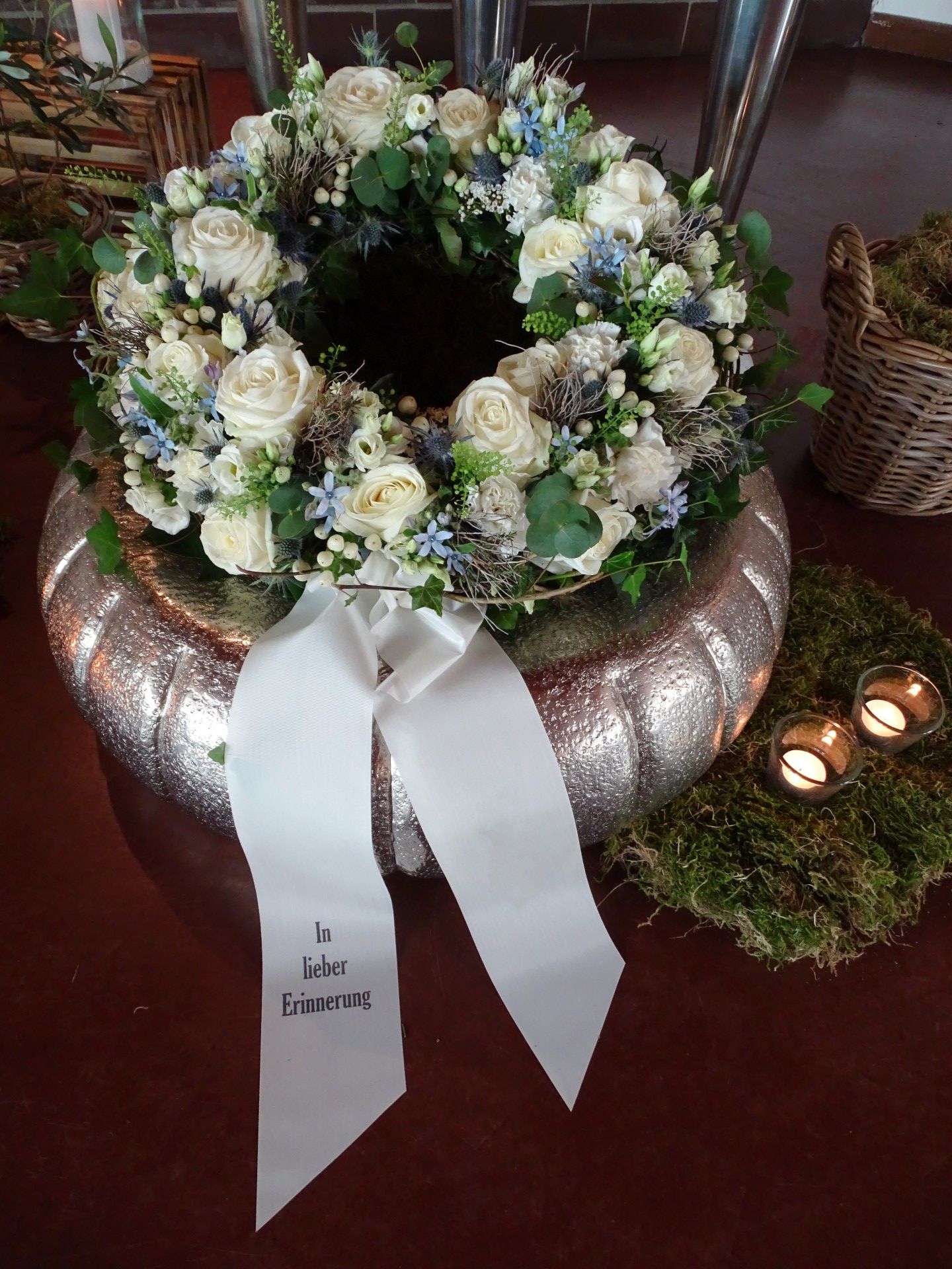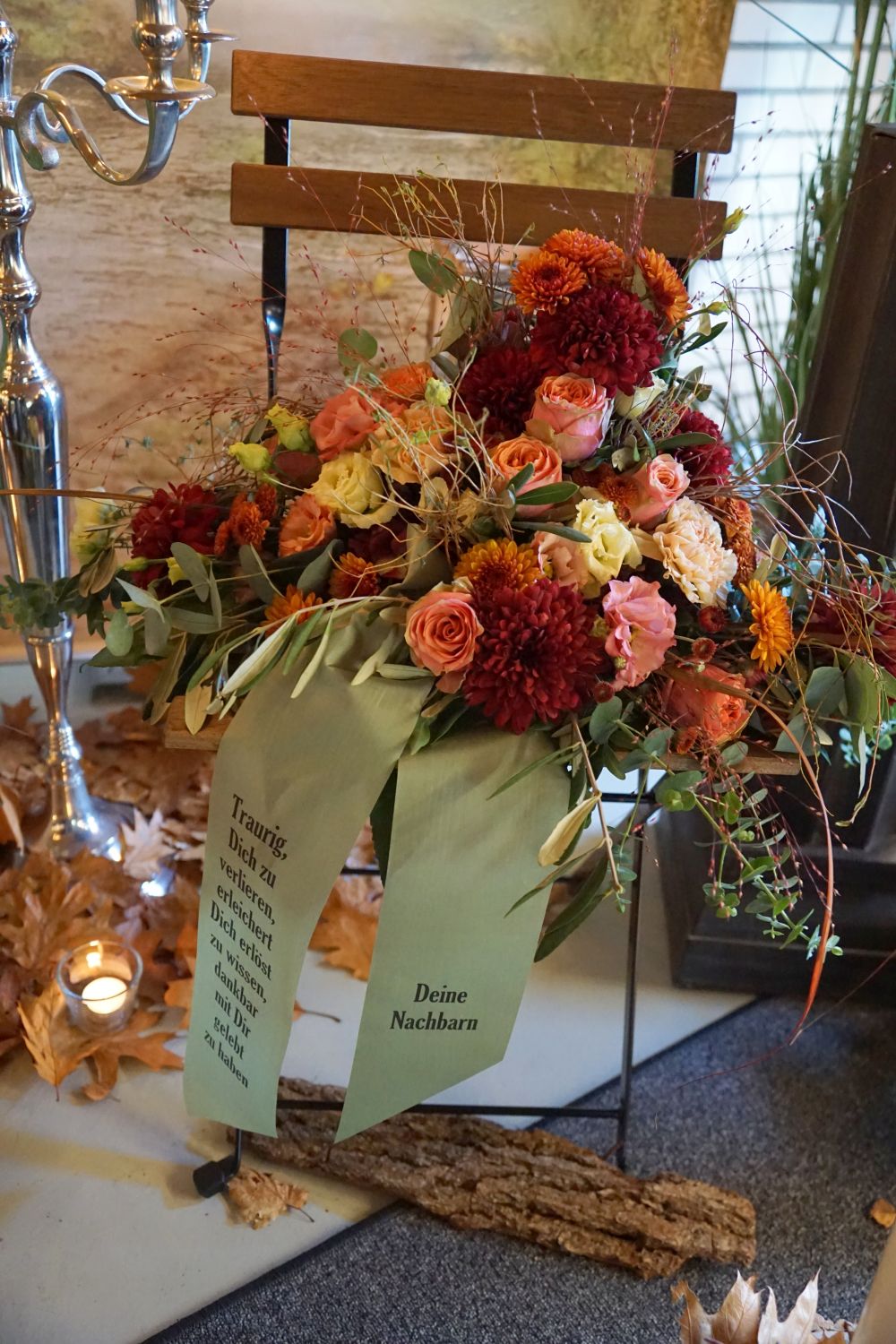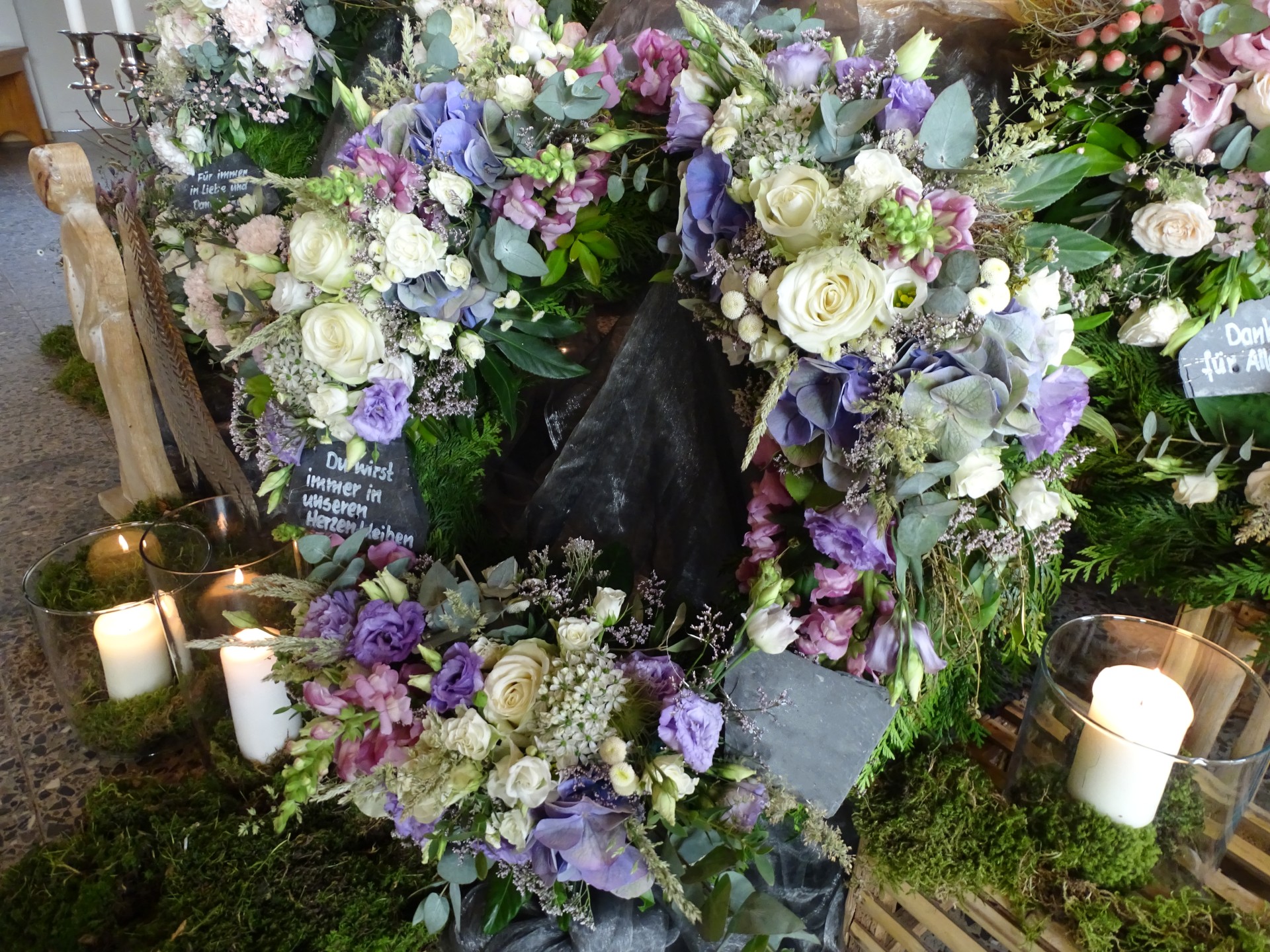 Wir sind mit viel Engagement und Kreativität für Sie da. Immer wieder hören wir, dass unsere Arrangements eine schöne Atmosphäre und wertvolle Erinnerungen schaffen. Das gelingt uns beispielsweise mit Accessoires aus dem Berufsleben oder Dekorationen, die Bezug auf das geliebte Hobby nehmen. Wenn Sie es wünschen, unterstützen wir Sie: mit besonderen Dekorationen, stimmungsvoller Musik oder individuellen Abschiedsritualen.