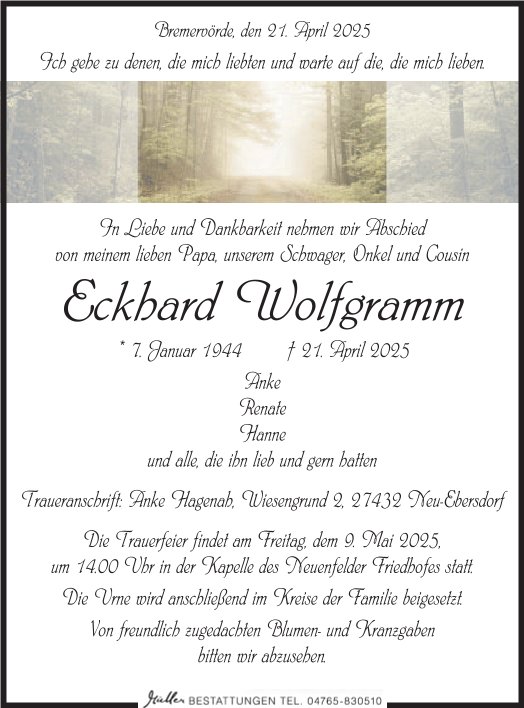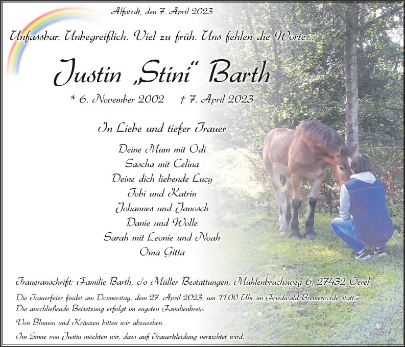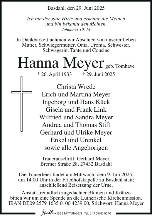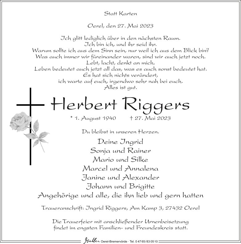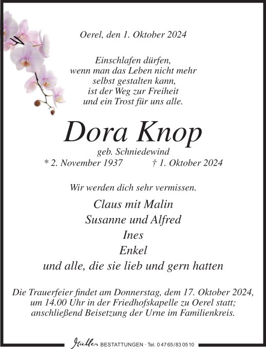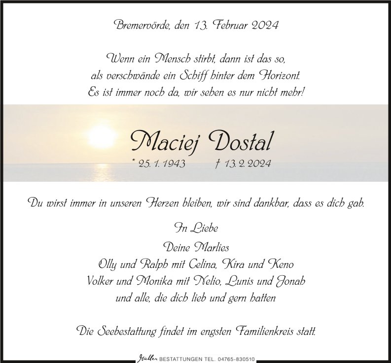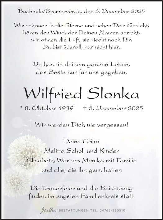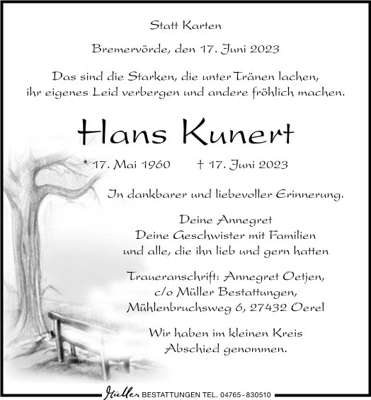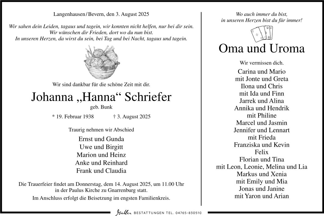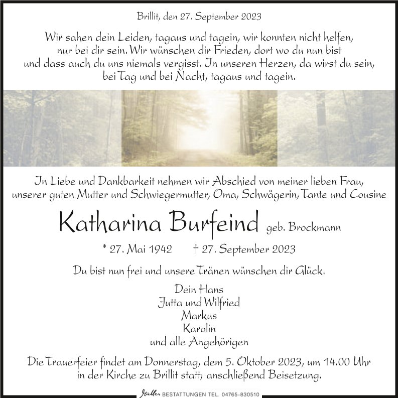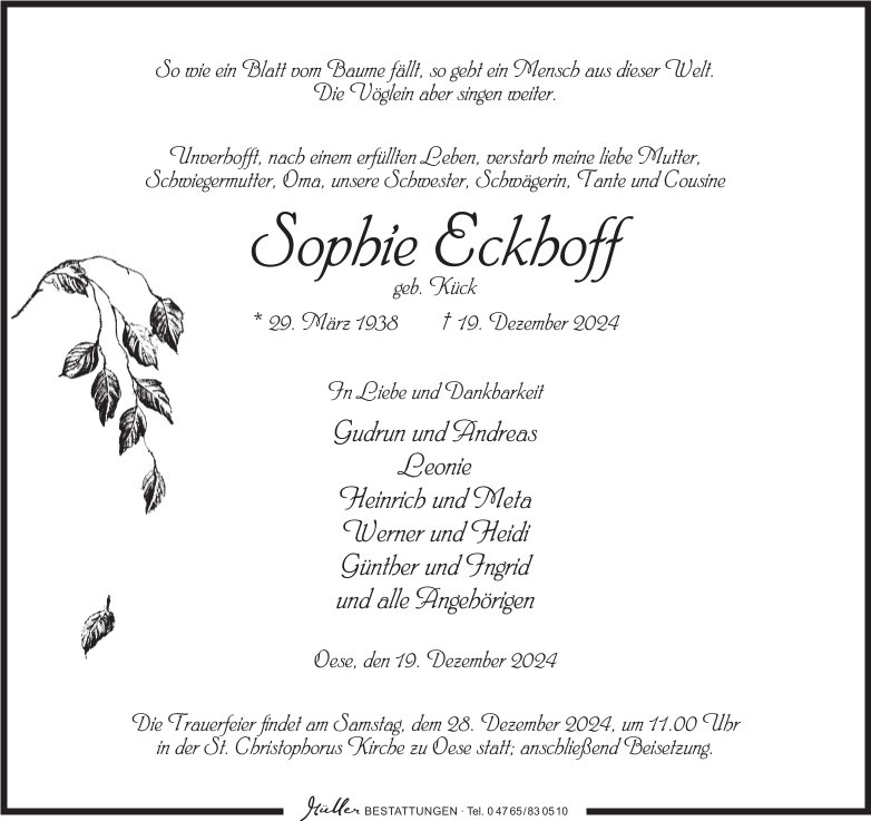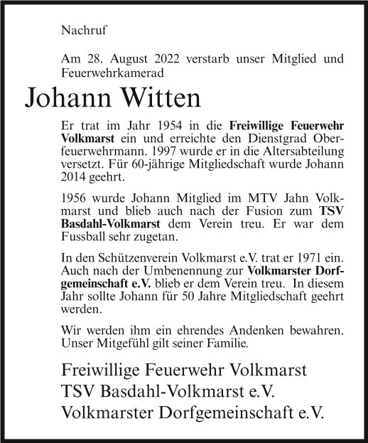 Die Trauerfeier findet am 5. November 2022 um 11.00 Uhr in der Findorff-Kirche zu Iselersheim statt.