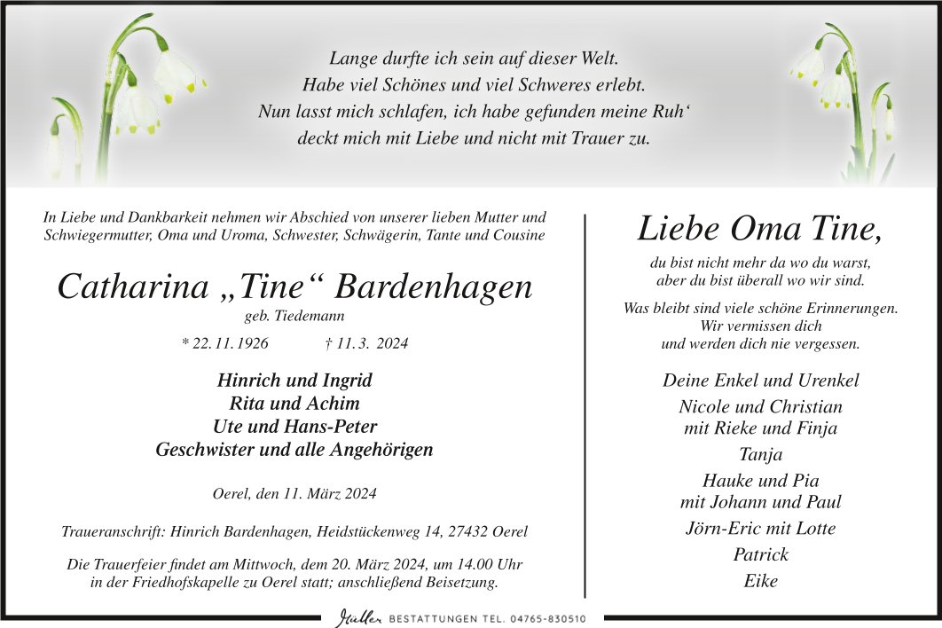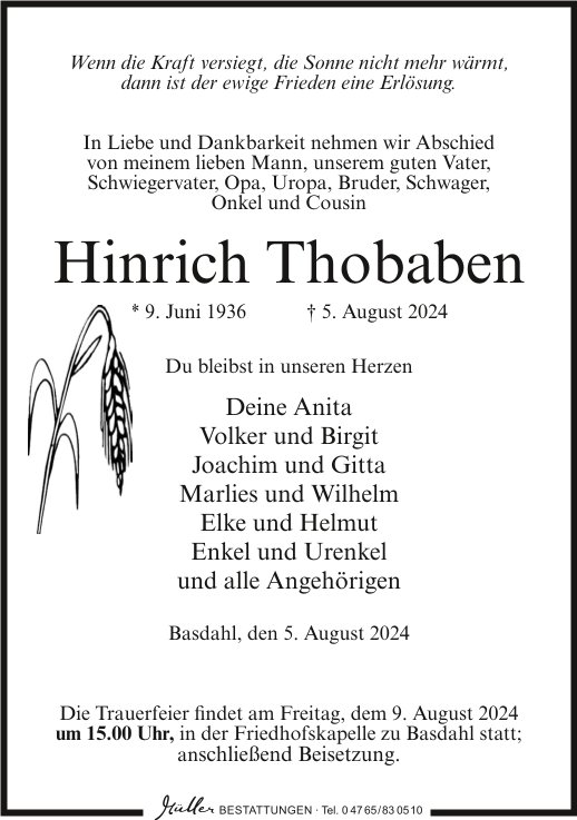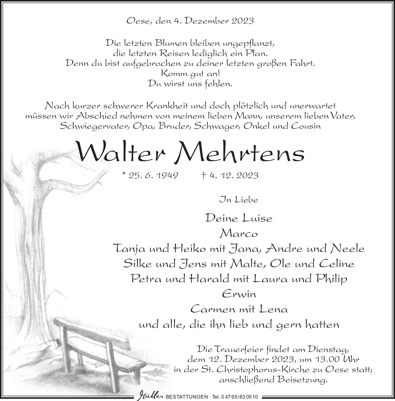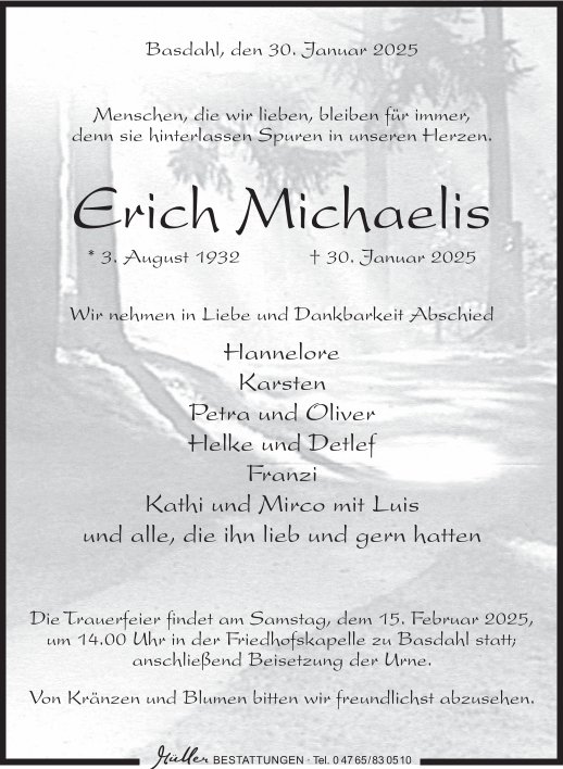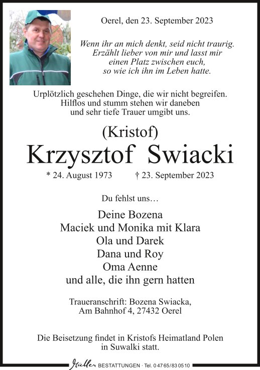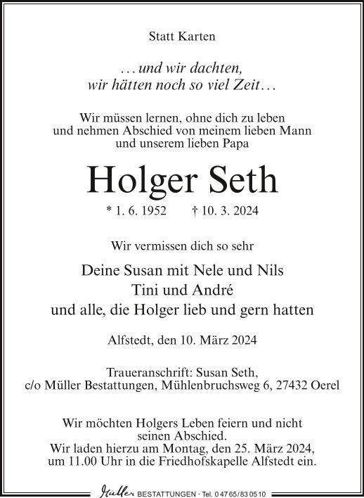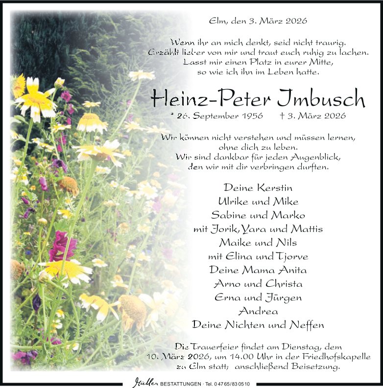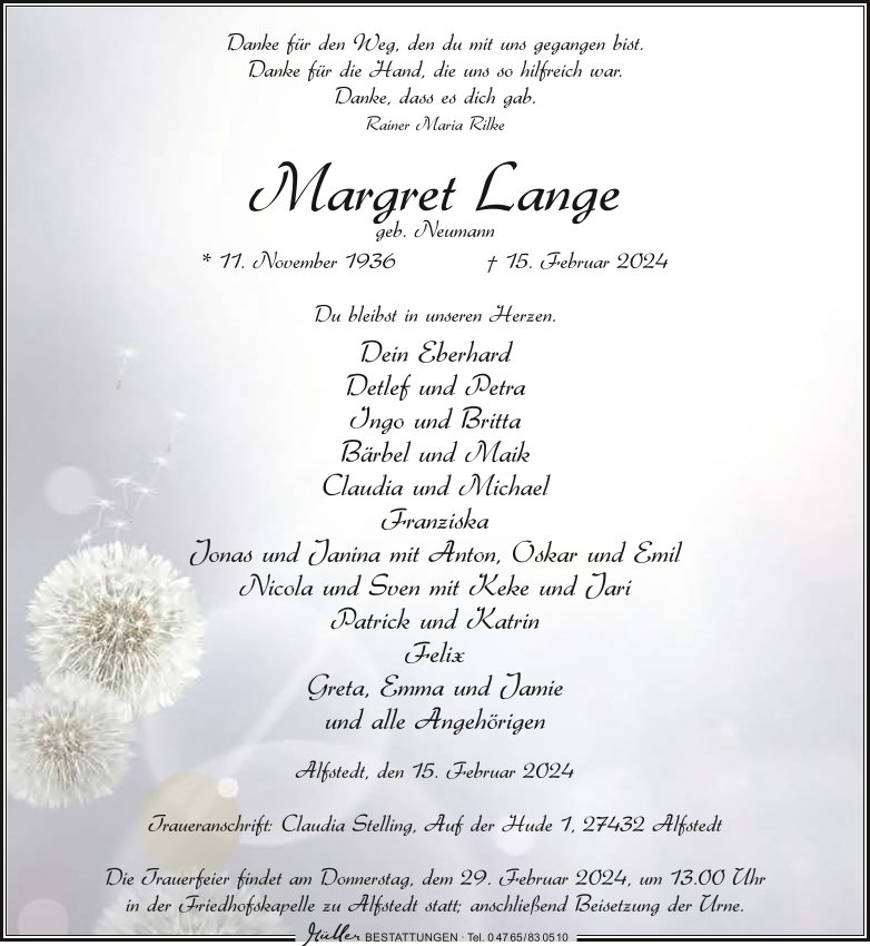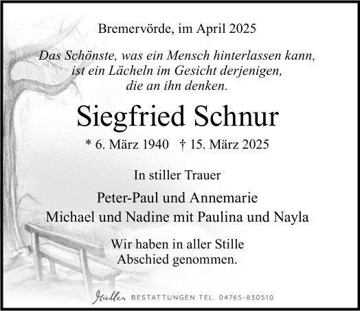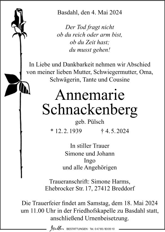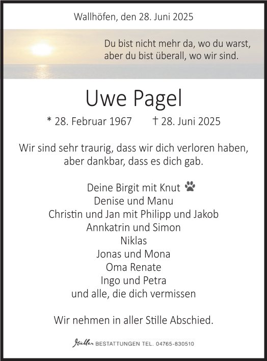 Die Trauerfeier findet am 5. November 2022 um 11.00 Uhr in der Findorff-Kirche zu Iselersheim statt.